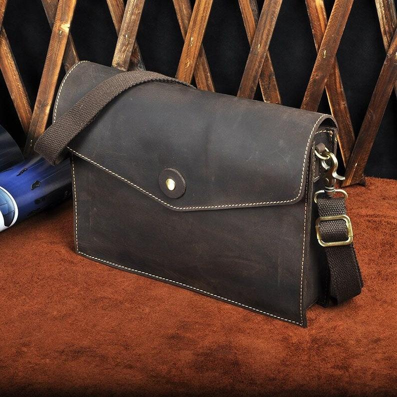 กระเป๋าแมสเซ็นเจอร์หนังแท้สำหรับผู้ชายกระเป๋าวินเทจสะพายข้างสำหรับผู้ชายกระเป๋า MB-0025ใส่ได้ทุกเพศโลโก้ตามสั่ง