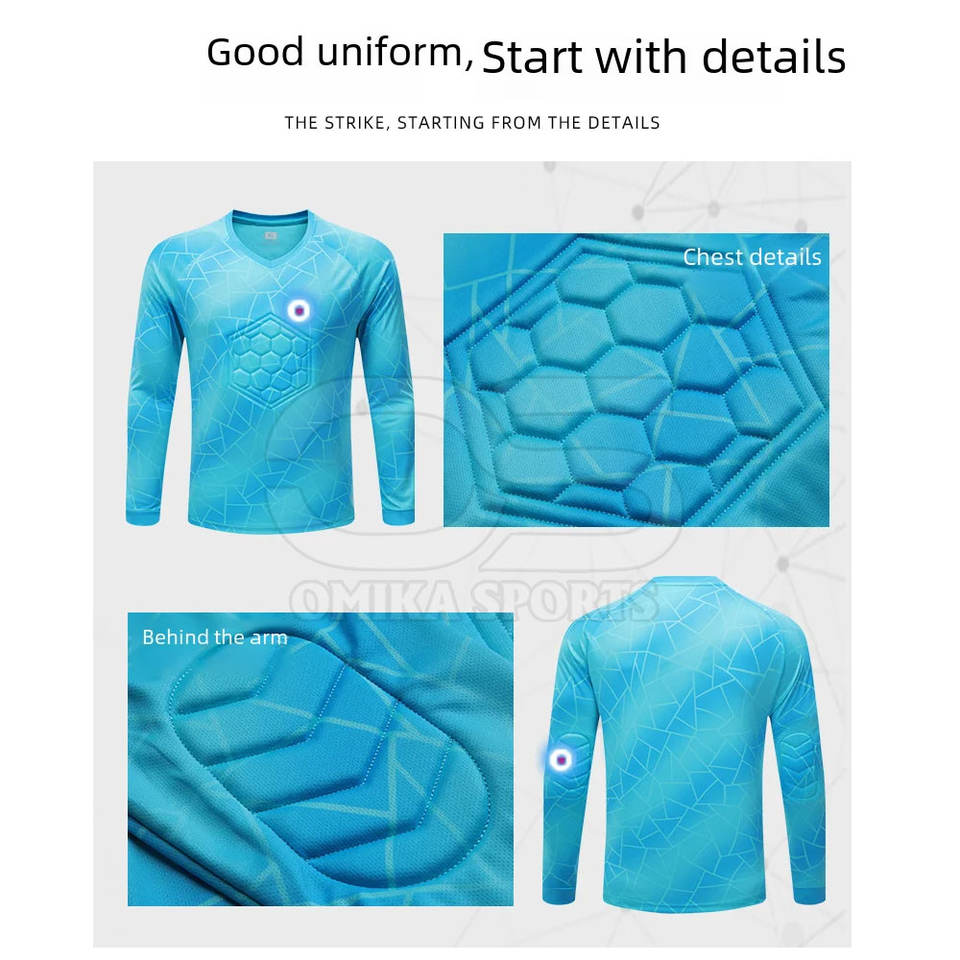 เครื่องแบบมีแผ่นรองผู้รักษาประตูสำหรับฝึกมืออาชีพแบบมีความยืดหยุ่นและเย็บคงทนโลโก้ได้ตามต้องการ