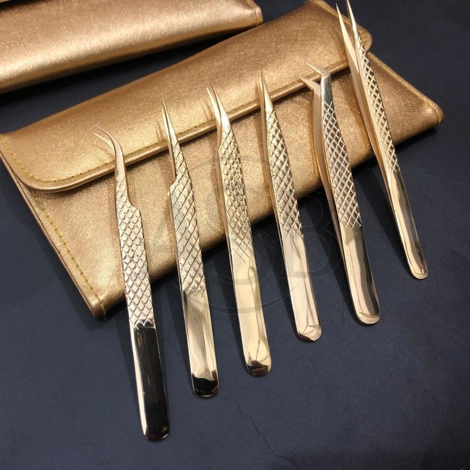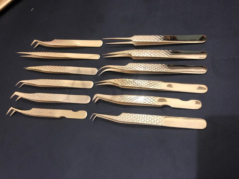 แหนบต่อขนตาปลอมแบบมีด้ามจับทรงเพชรทำจากสเตนเลสสตีลทนทานชุบทองโลโก้ตามสั่ง