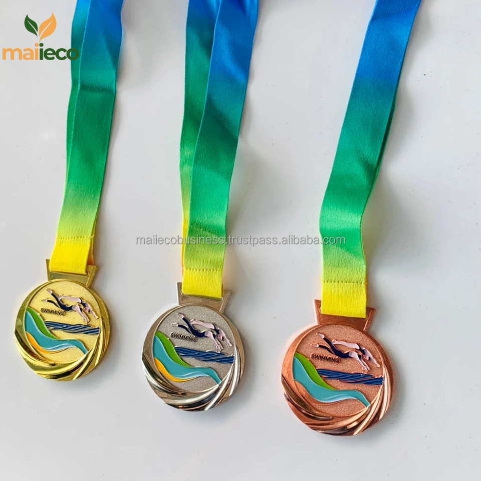 Custom Logo Gold Silver Bronze Metal Blank Medal for Swimming Sports & Marathon Metal Crafts with Ribbon