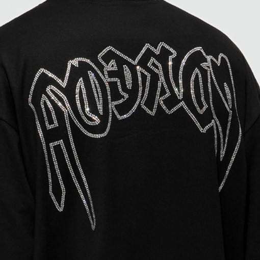 เสื้อยืดคอตตอนสตรีทแวร์โอเวอร์ไซส์ลายกราฟิกโลโก้แบบกำหนดเอง ประดับเพชร ลายพิมพ์รีดร้อนสำหรับผู้ชาย