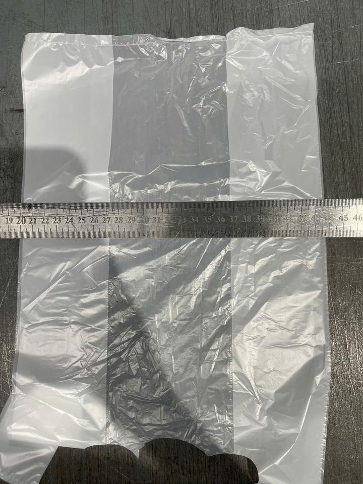ถุงเสื้อยืดพลาสติก PE แบบใช้แล้วทิ้ง พิมพ์โลโก้แบบกราเวียร์ พร้อมหูหิ้วแบบเสื้อกั๊ก (0.1 มม.)