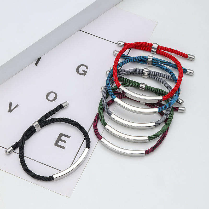 กำไลข้อมือสแตนเลสสตีลถักเชือกแบบปรับได้ สลักลายโลโก้ตามสั่ง สำหรับผู้หญิงและผู้ชาย สร้อยข้อมือเชือกแฟชั่น