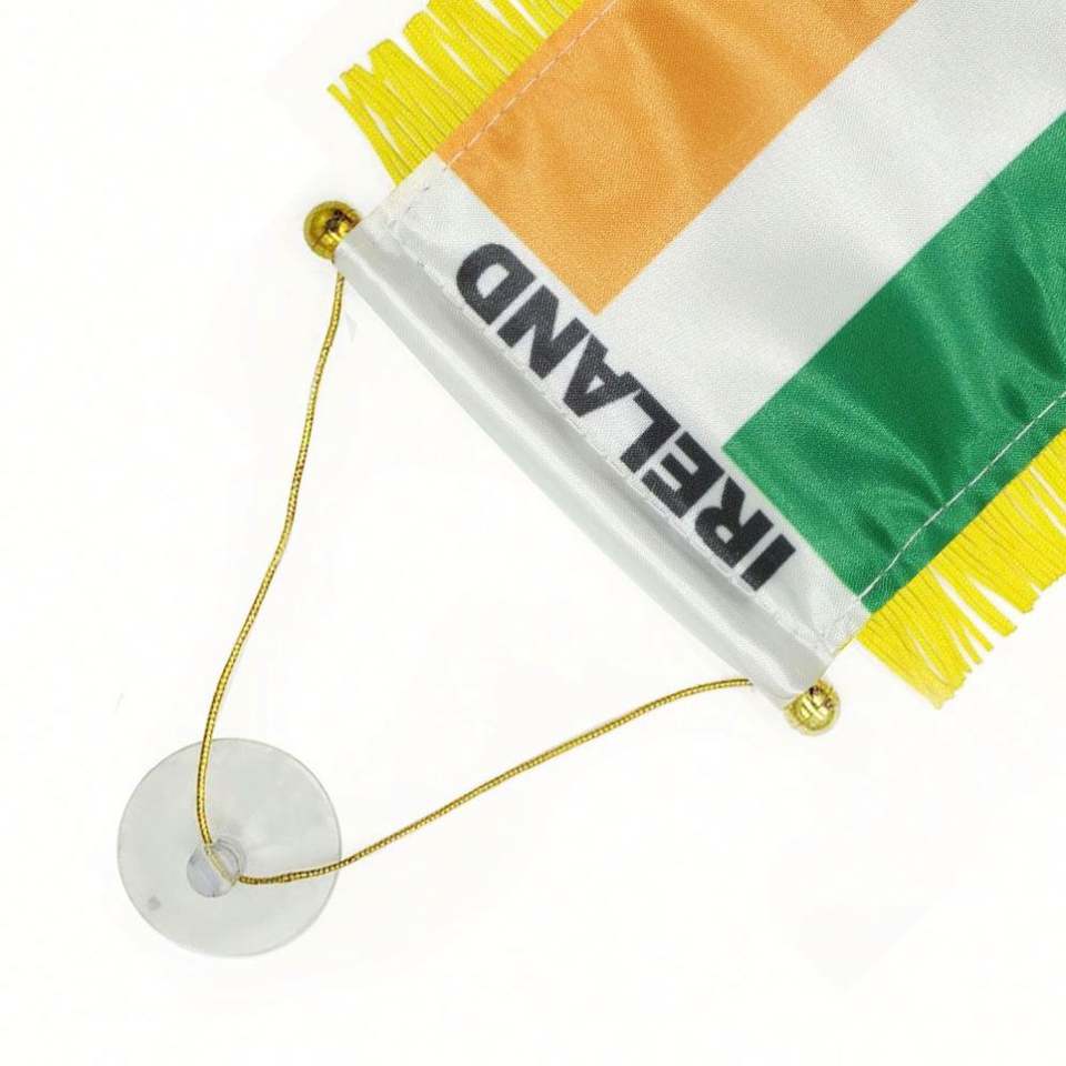 ธงไอร์แลนด์แบบแขวนพิมพ์ลายดิจิทัลพร้อมโลโก้สั่งทำ สำหรับกระจกมองหลังรถยนต์และตกแต่งบ้านเพื่อการศึกษา