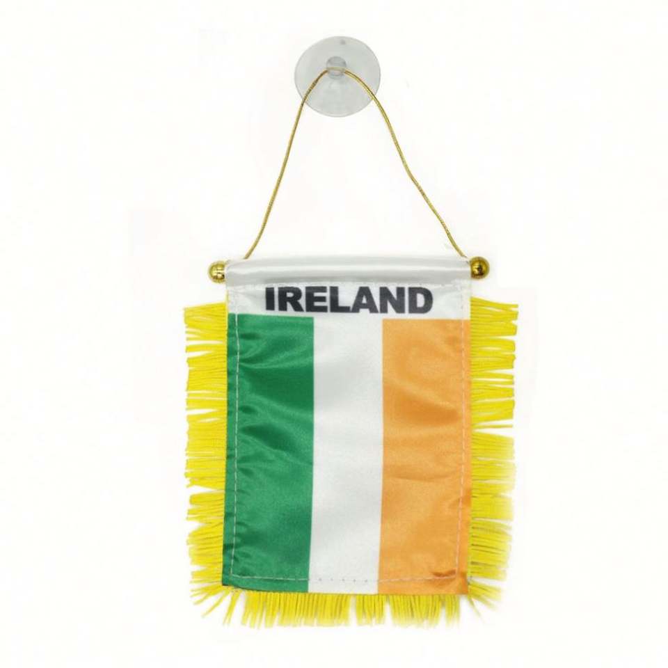 ธงไอร์แลนด์แบบแขวนพิมพ์ลายดิจิทัลพร้อมโลโก้สั่งทำ สำหรับกระจกมองหลังรถยนต์และตกแต่งบ้านเพื่อการศึกษา