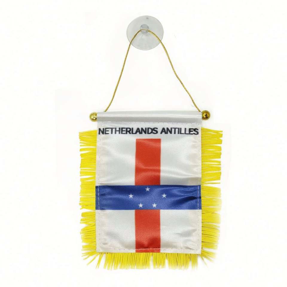 ธงสามเหลี่ยมเนเธอร์แลนด์แอนติลลิสแบบแขวน พิมพ์ลายดิจิทัล พร้อมโลโก้สั่งทำ สำหรับกระจกมองหลังรถยนต์และตกแต่งบ้าน