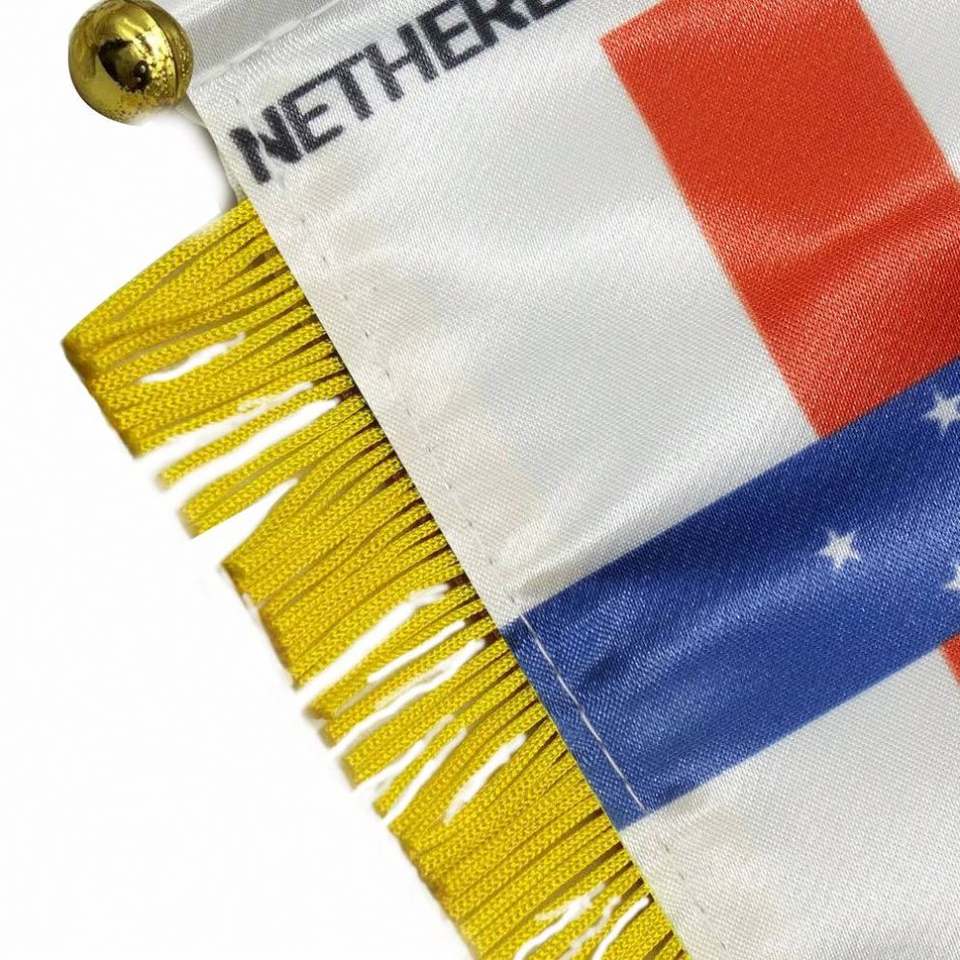 ธงสามเหลี่ยมเนเธอร์แลนด์แอนติลลิสแบบแขวน พิมพ์ลายดิจิทัล พร้อมโลโก้สั่งทำ สำหรับกระจกมองหลังรถยนต์และตกแต่งบ้าน