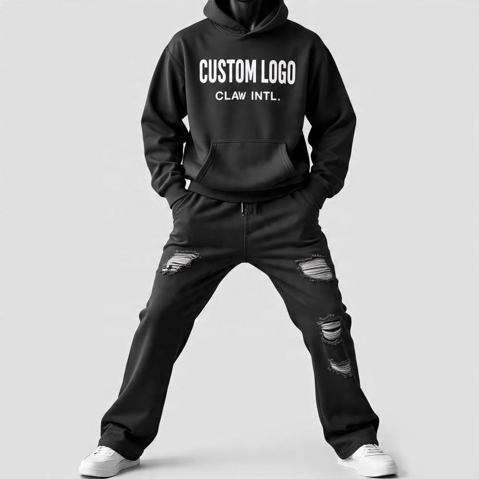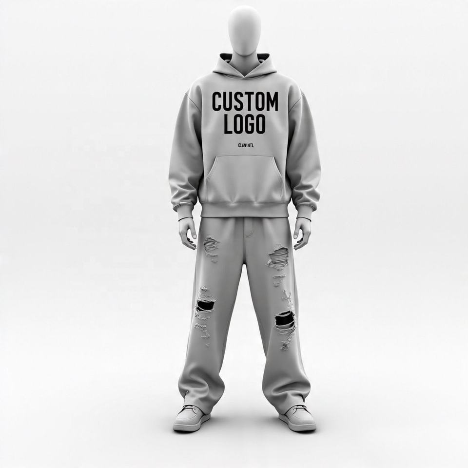 เสื้อสวมหัวมีฮู้ดและกางเกงวอร์มสำหรับผู้ชายผ้าฝ้าย100% GSM 600โลโก้ออกแบบได้ตามที่ต้องการ