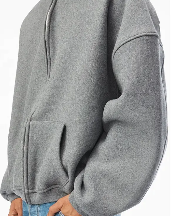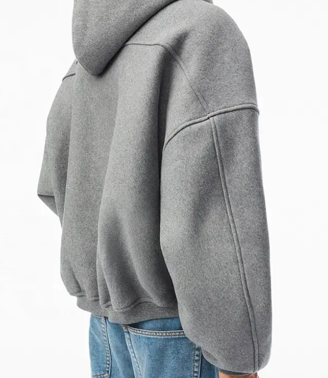 เสื้อฮู้ดซิปเต็มตัวผ้าฝ้ายฟลีซหนาน้ำหนัก 360 กรัม ทรงโอเวอร์ไซส์ ตัดเย็บแบบครอป ปักโลโก้ตามสั่ง รักษ์โลก สำหรับผู้ชาย
