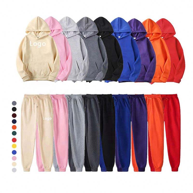 ชุดเสื้อฮู้ดกันหนาวและกางเกงมีฮู้ดสำหรับผู้ชายชุดออกกำลังกายแบบสวมหัวใส่ได้ทั้งชายและหญิงชุดเสื้อผ้าสำหรับใส่วิ่งออกกำลังกายโลโก้ออกแบบได้ตามต้องการ