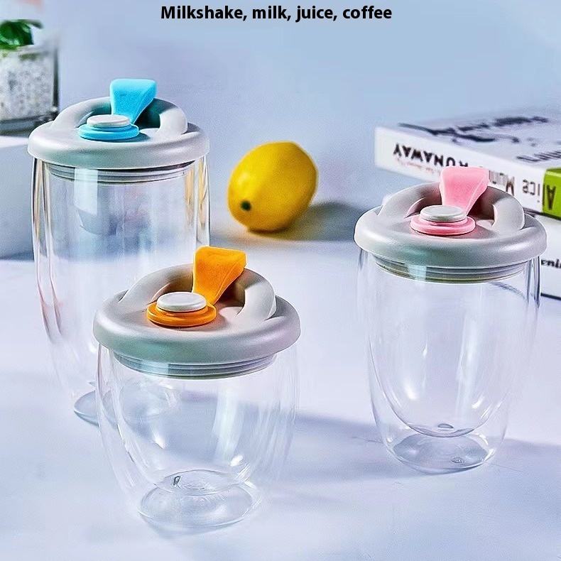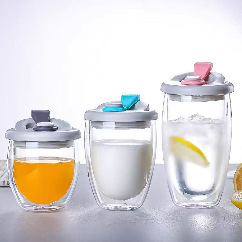 แก้วกาแฟแบบพกพา ฝาปิดกันรั่ว ผลิตจากแก้วบอโรซิลิเกตคุณภาพสูง ผนังสองชั้น พร้อมโลโก้สั่งทำได้