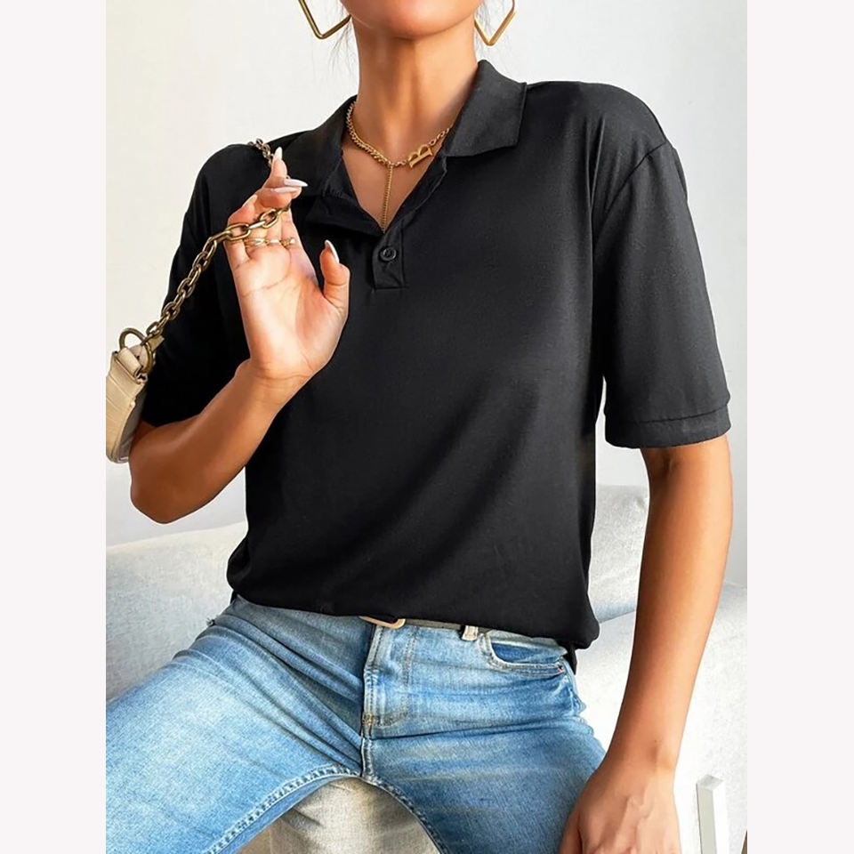 เสื้อโปโลผู้หญิงปักโลโก้ตามสั่ง ผ้าฝ้าย 100% เสื้อโปโลแบบเรียบสำหรับเล่นกีฬา ดีไซน์แฟชั่นล่าสุด