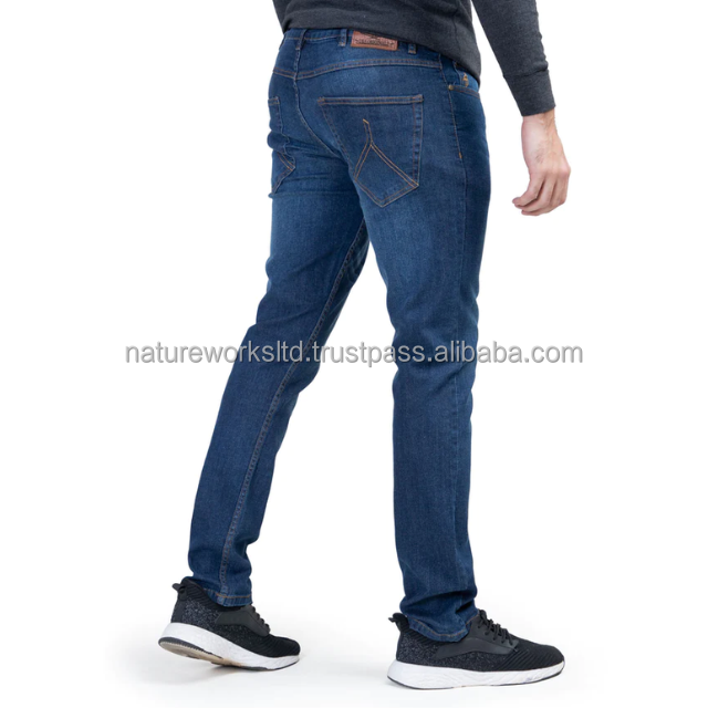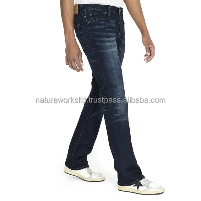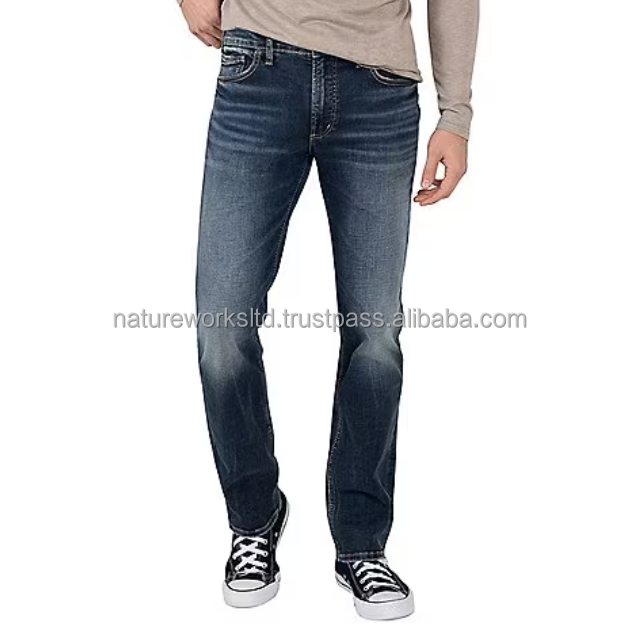 Custom Logo High Quality 100% Denim Fabric Dark Blue Wash Straight Plus Size Baggy Casual Mid Men's Jeans Cheap Price Boy Pants