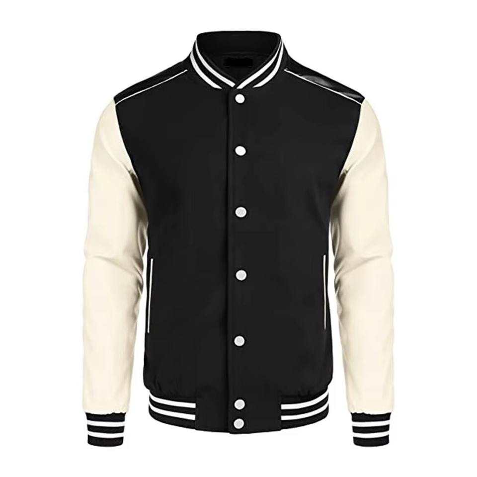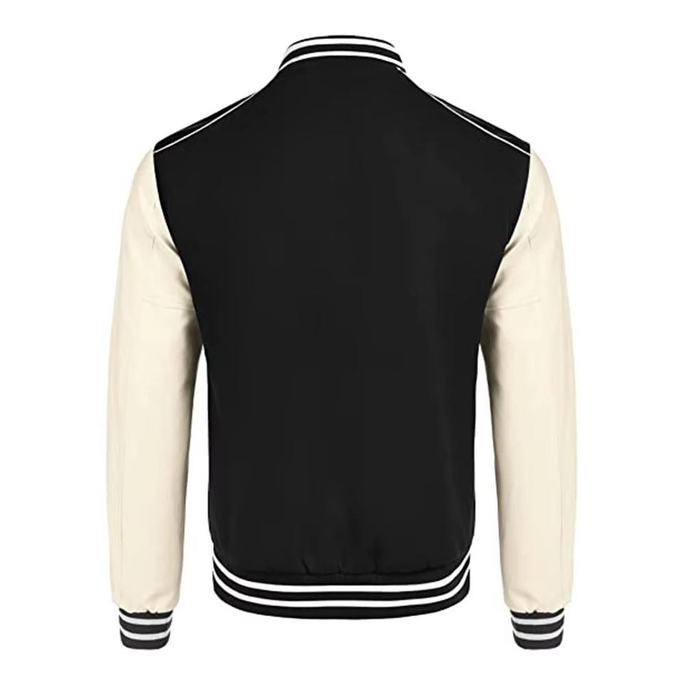เสื้อแจ็คเก็ตวิทยาลัยผู้ชายแบบมีโลโก้สั่งทำ คุณภาพสูง ผลิตจากขนสัตว์แท้ 100% ขายส่งแบบเรียบๆ ไม่มีลาย สำหรับทีมเบสบอล