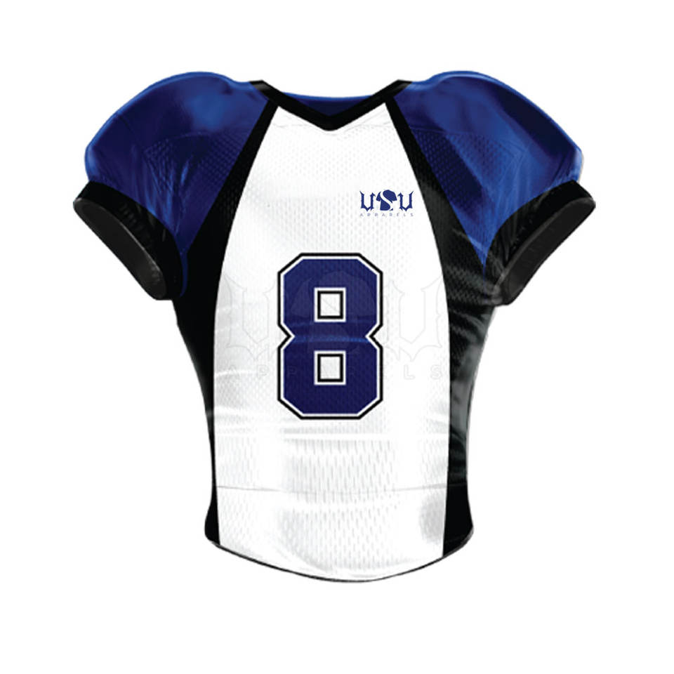ชุดยูนิฟอร์มอเมริกันฟุตบอลแขนสั้นคุณภาพสูงพร้อมโลโก้สั่งทำ ผลิตจากโพลีเอสเตอร์ 100% สำหรับมืออาชีพ มีจำหน่าย