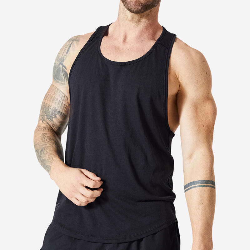 เสื้อกล้ามออกกำลังกายผู้ชายผ้าฝ้ายคุณภาพสูง พิมพ์โลโก้ได้ตามต้องการ สำหรับเล่นกล้าม ฟิตเนส และยิม