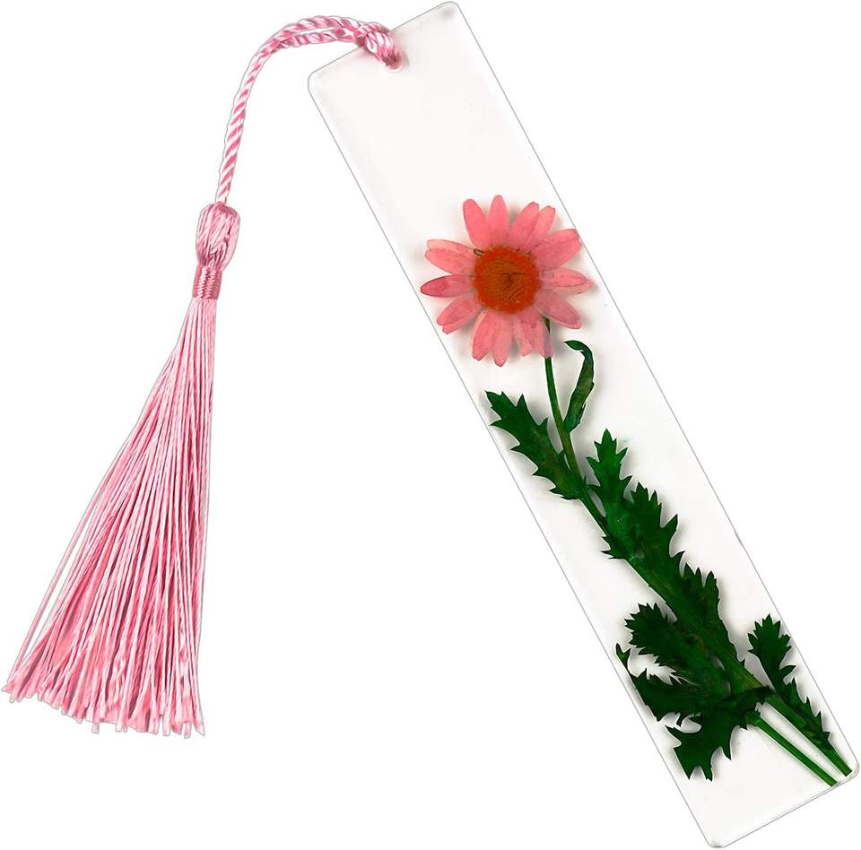 ที่คั่นหนังสือกลีบดอกแห้งทำจากเรซินใสรูปดอกทานตะวันพร้อมพู่สำหรับเป็นของขวัญทางธุรกิจโลโก้ตามสั่ง