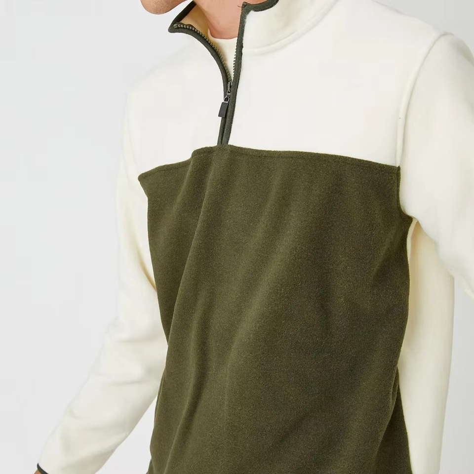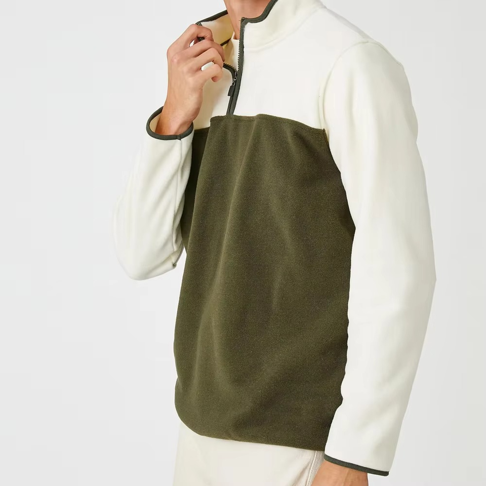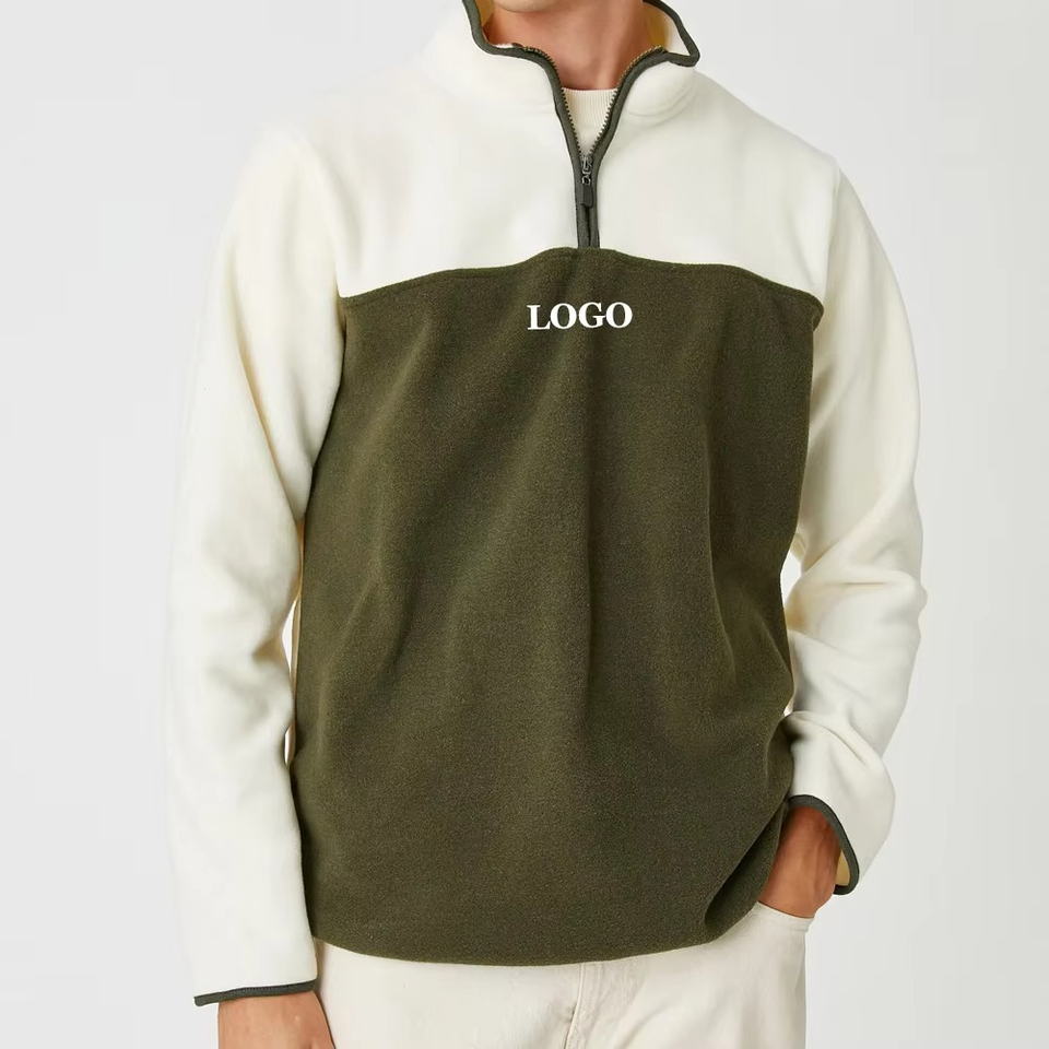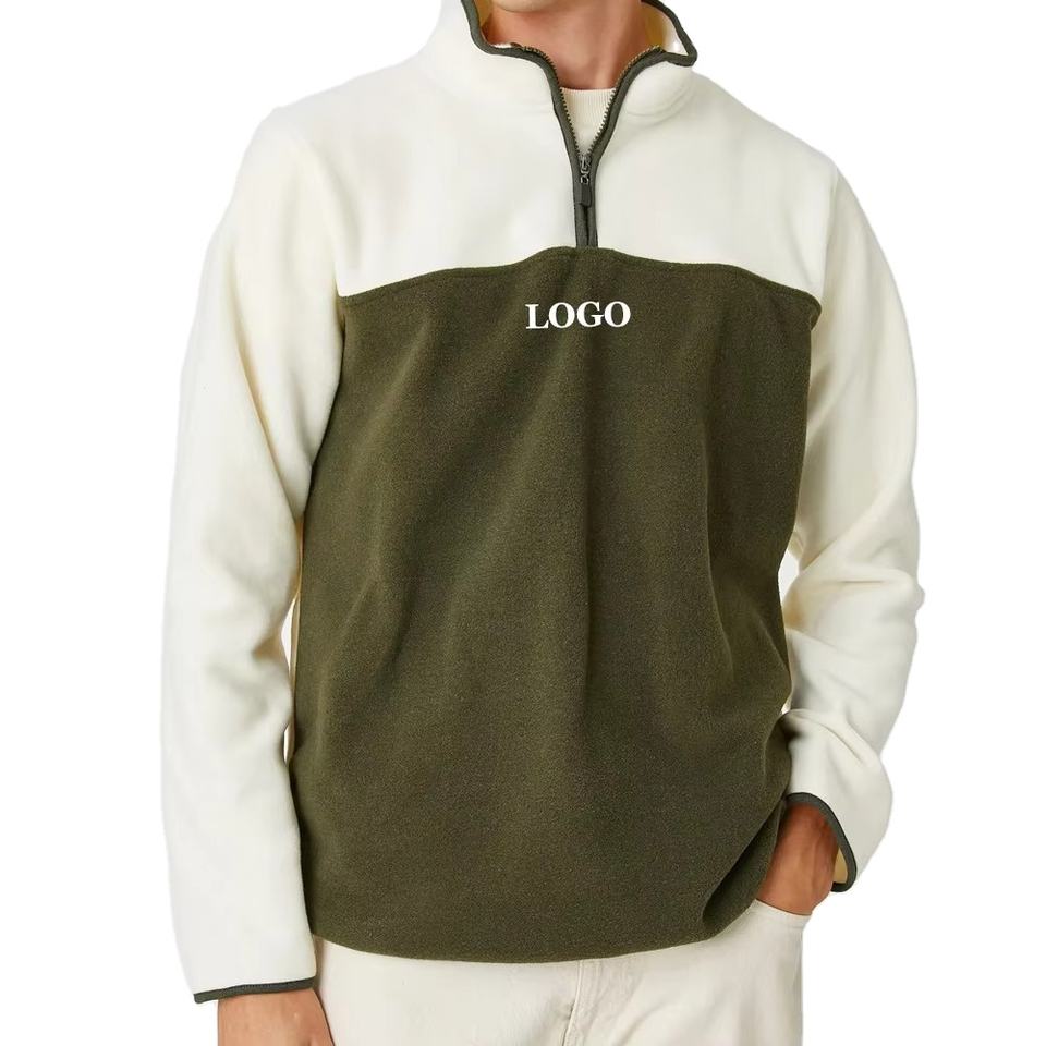 เสื้อสเวตเตอร์แขนยาวสำหรับผู้ชายผ้าคอตตอนผสมบล็อกสีแบบใหม่ล่าสุดออกแบบโลโก้ได้ตามต้องการ