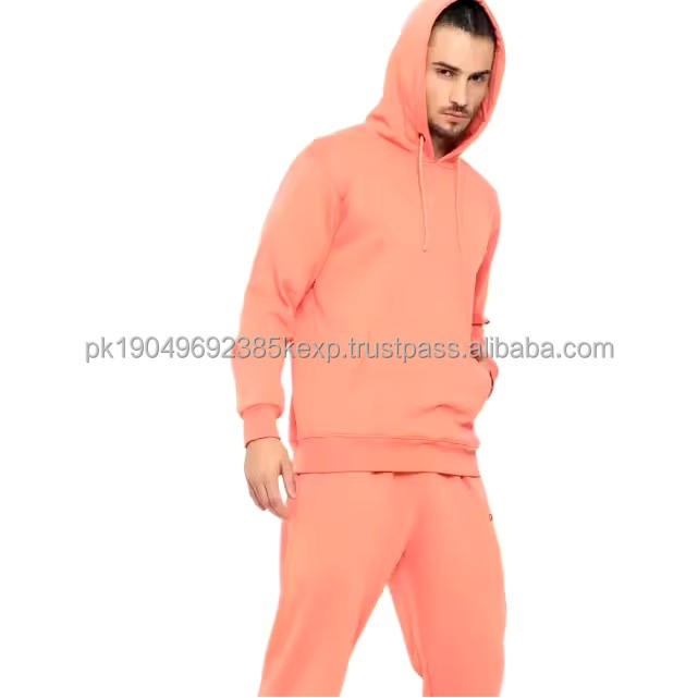 ชุดเซ็ตเสื้อฮู้ดดี้และกางเกงวอร์มผ้าเฟรนช์เทอร์รี่ปักโลโก้คุณภาพสูง ซิปแบบรูดขึ้น ล้างสีแบบแอซิดวอช สำหรับผู้ชาย