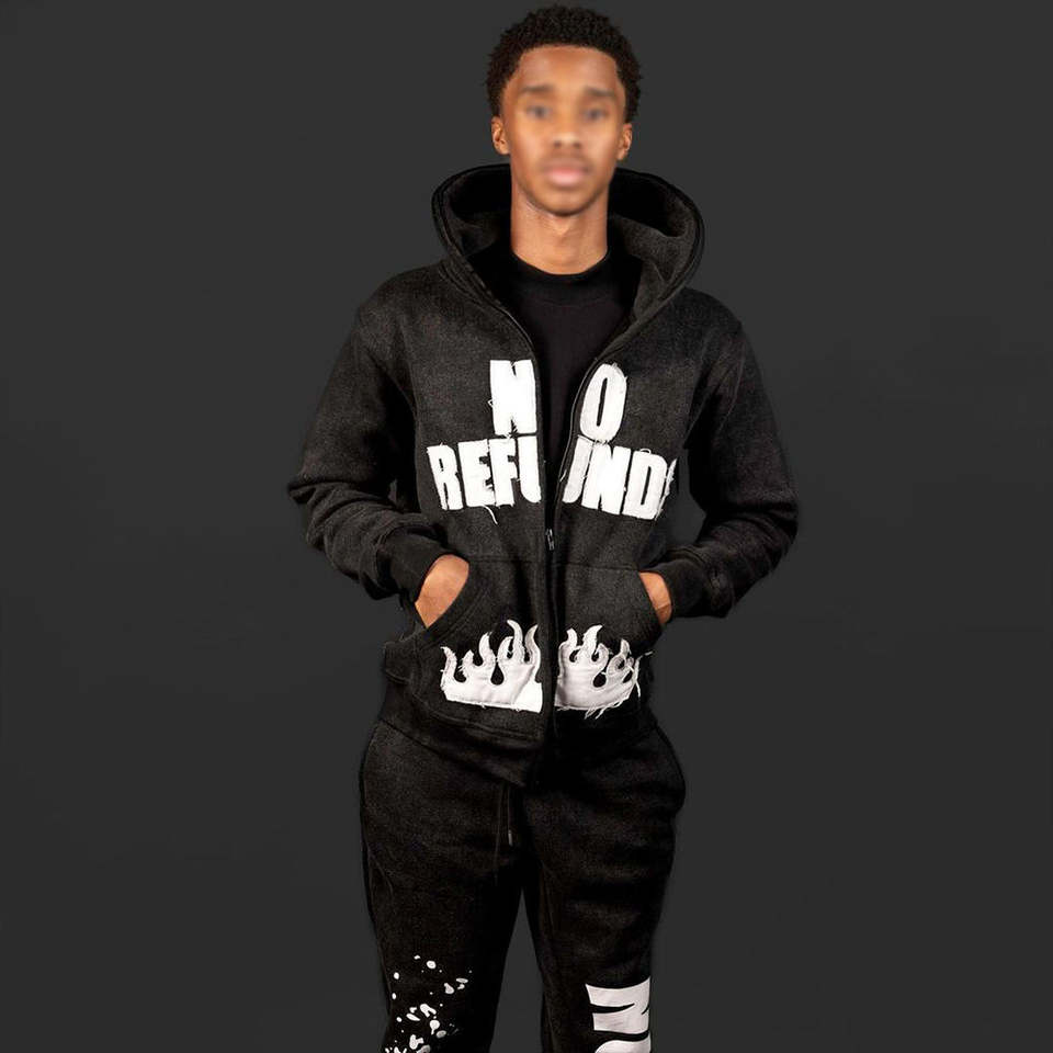 ชุดเซ็ตเสื้อฮู้ดดี้และกางเกงวอร์มผ้าเฟรนช์เทอร์รี่ปักโลโก้คุณภาพสูง 2 ชิ้น ชุดจ็อกเกอร์ทรงบาน ซิปหน้า สำหรับผู้ชาย