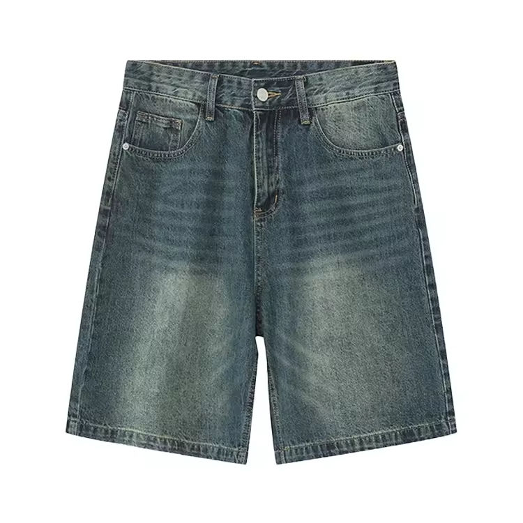 กางเกงยีนส์ขาสั้นทรงแบ็กกี้สไตล์วินเทจผ้าเดนิมยืดคุณภาพสูงพร้อมโลโก้สั่งทำพิเศษสำหรับผู้ชาย แฟชั่นฤดูร้อนลำลองสีพื้น