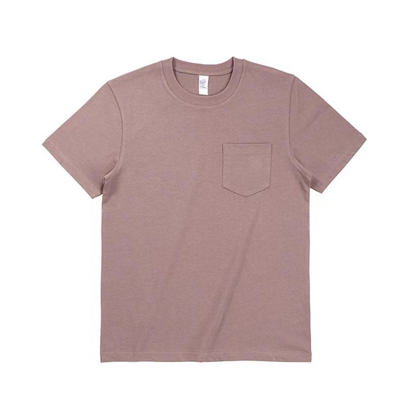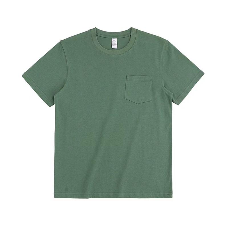 เสื้อยืดแขนสั้นทรงพอดีตัวสำหรับผู้ชายเสื้อยืดสีพื้นผ้าคอตตอนสี100% มีกระเป๋าด้านหน้าลำลอง