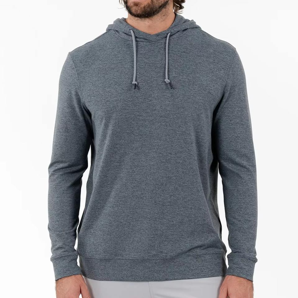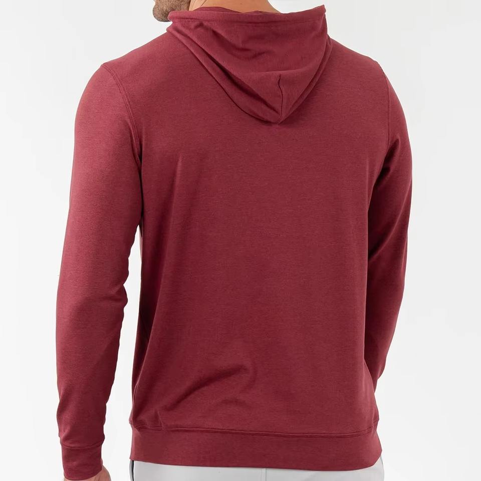 เสื้อฮู้ดดี้ผู้ชายผ้าโพลีเอสเตอร์ไนลอนคุณภาพสูง พิมพ์โลโก้ได้ ยืดได้สี่ทิศทาง สวมใส่สบาย เหมาะสำหรับการออกกำลังกาย