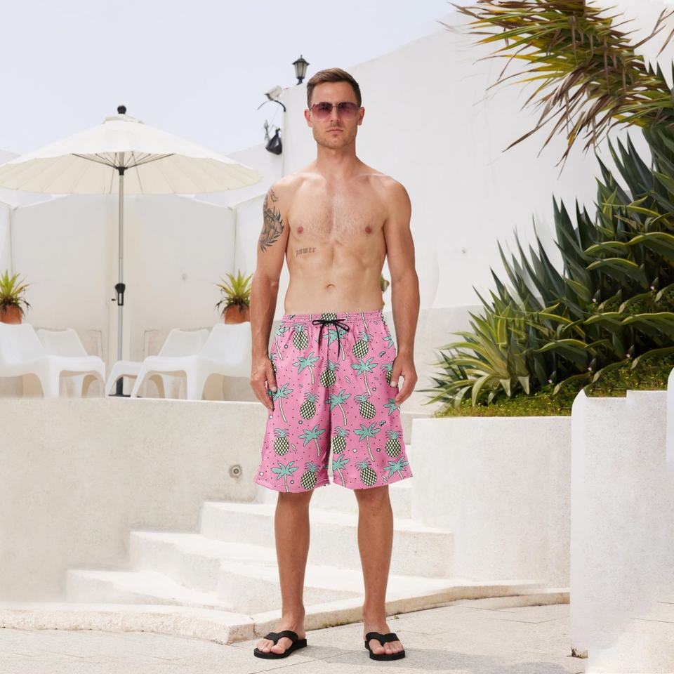 กางเกงว่ายน้ำชายคุณภาพสูงลายทางพร้อมโลโก้แบบกำหนดเอง กางเกงว่ายน้ำลายสก็อตแบบต่อผ้าลายตาราง กางเกงบิกินี่ชายคุณภาพสูง