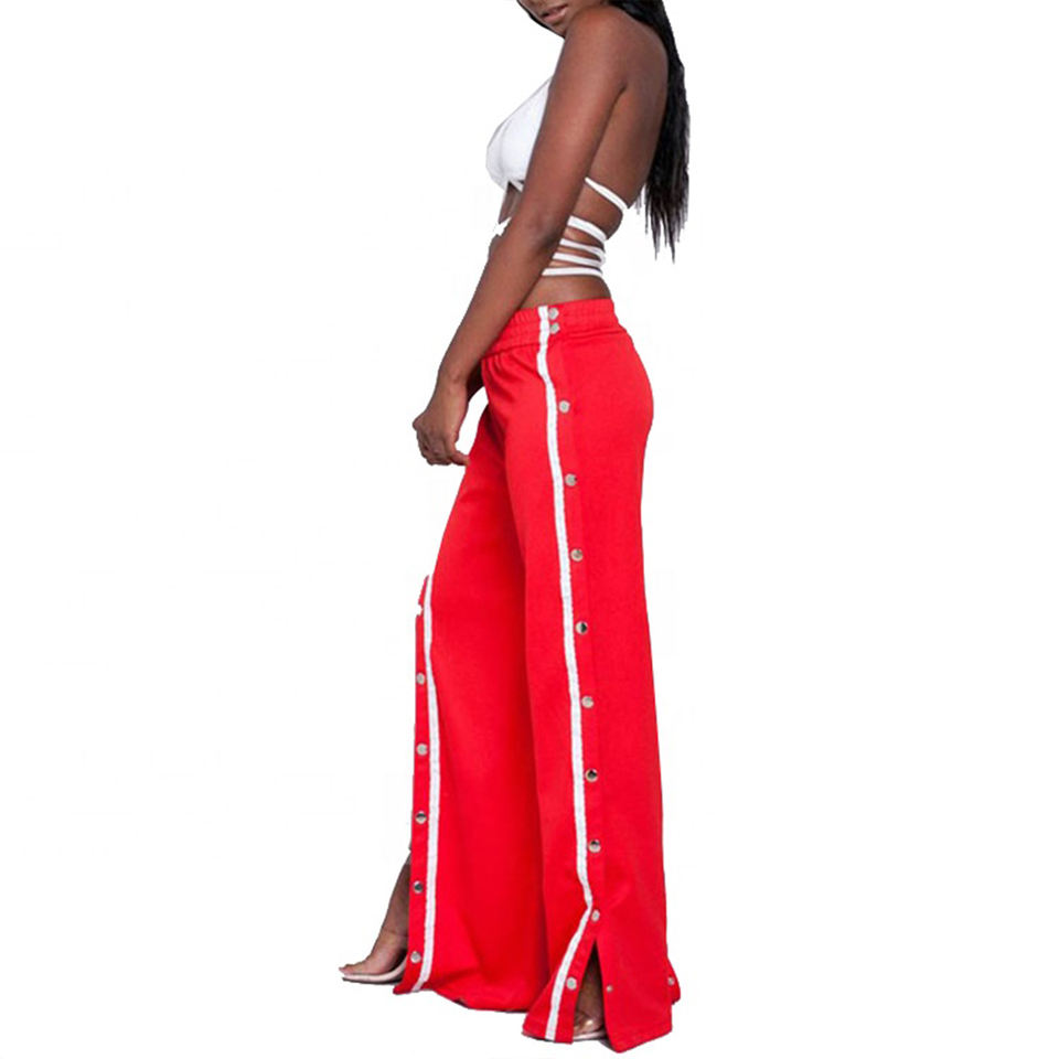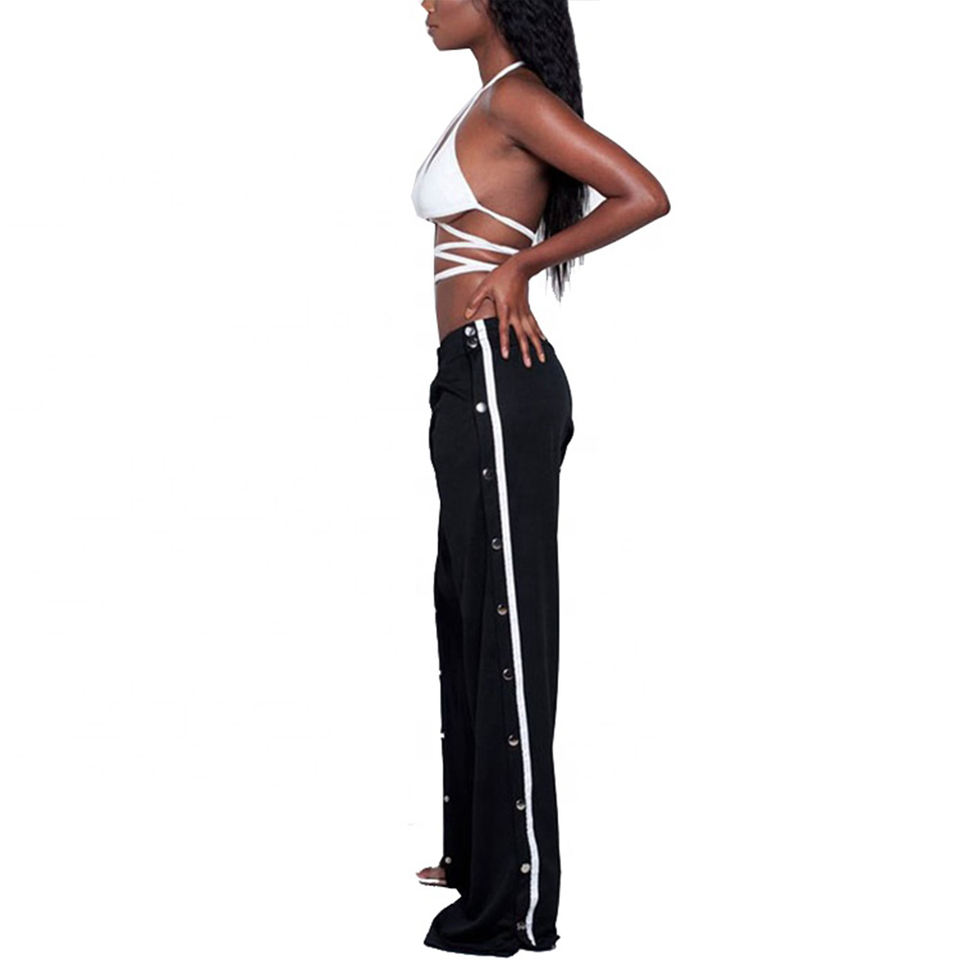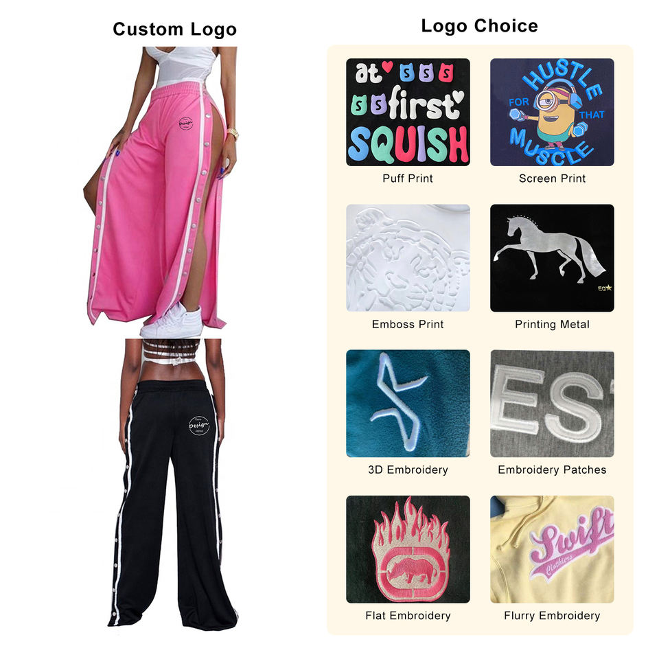 กางเกงสีขาวมีกระดุมผ่าข้างแบบหลวมกางเกงเอวสูงแบบติดกระดุมโลโก้ออกแบบได้ตามต้องการ