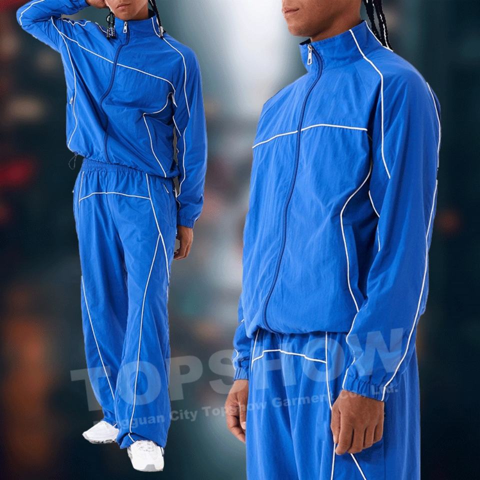 Custom Logo High Quality Nylon Windbreaker Two Piece Jogging Suits Reflective Zip up Streetwear Vintage Men's Tracksuit