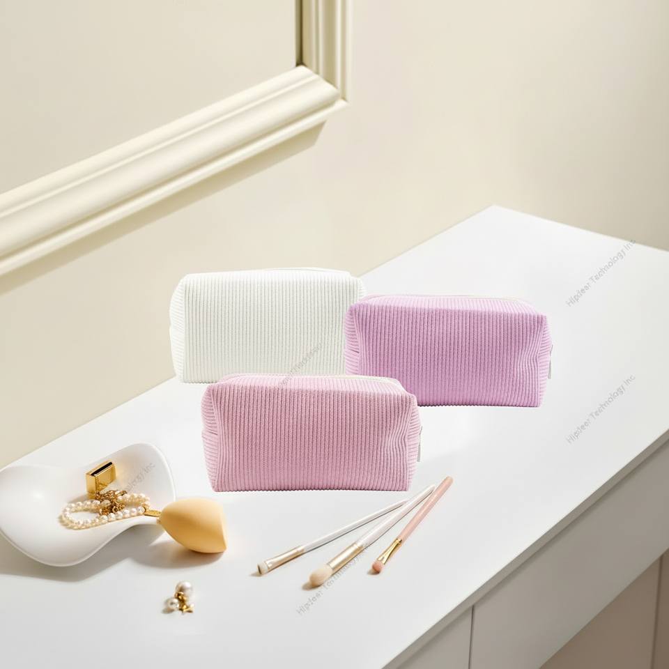 กระเป๋าเครื่องสำอางสำหรับผู้หญิงกระเป๋าเครื่องสำอางกำมะหยี่สีแดงสั่งทำโลโก้ได้