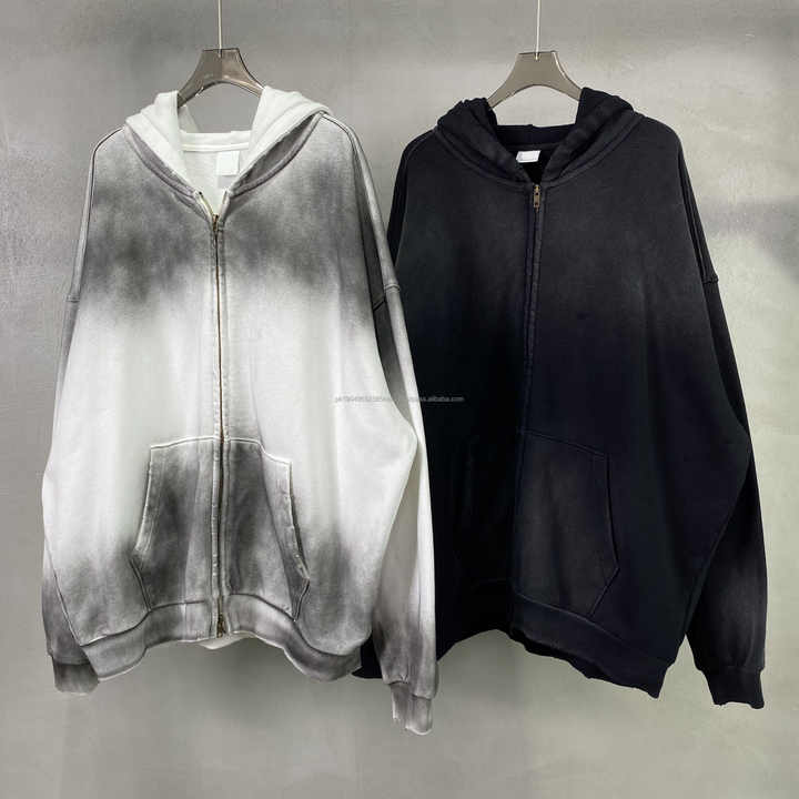 เสื้อมีฮู้ดย้อมสีไล่ระดับสีสำหรับผู้ชายเสื้อมีฮู้ดผ้าฟลีซขั้วโลกหนาโอเวอร์ไซส์ออกแบบโลโก้ได้ตามต้องการ