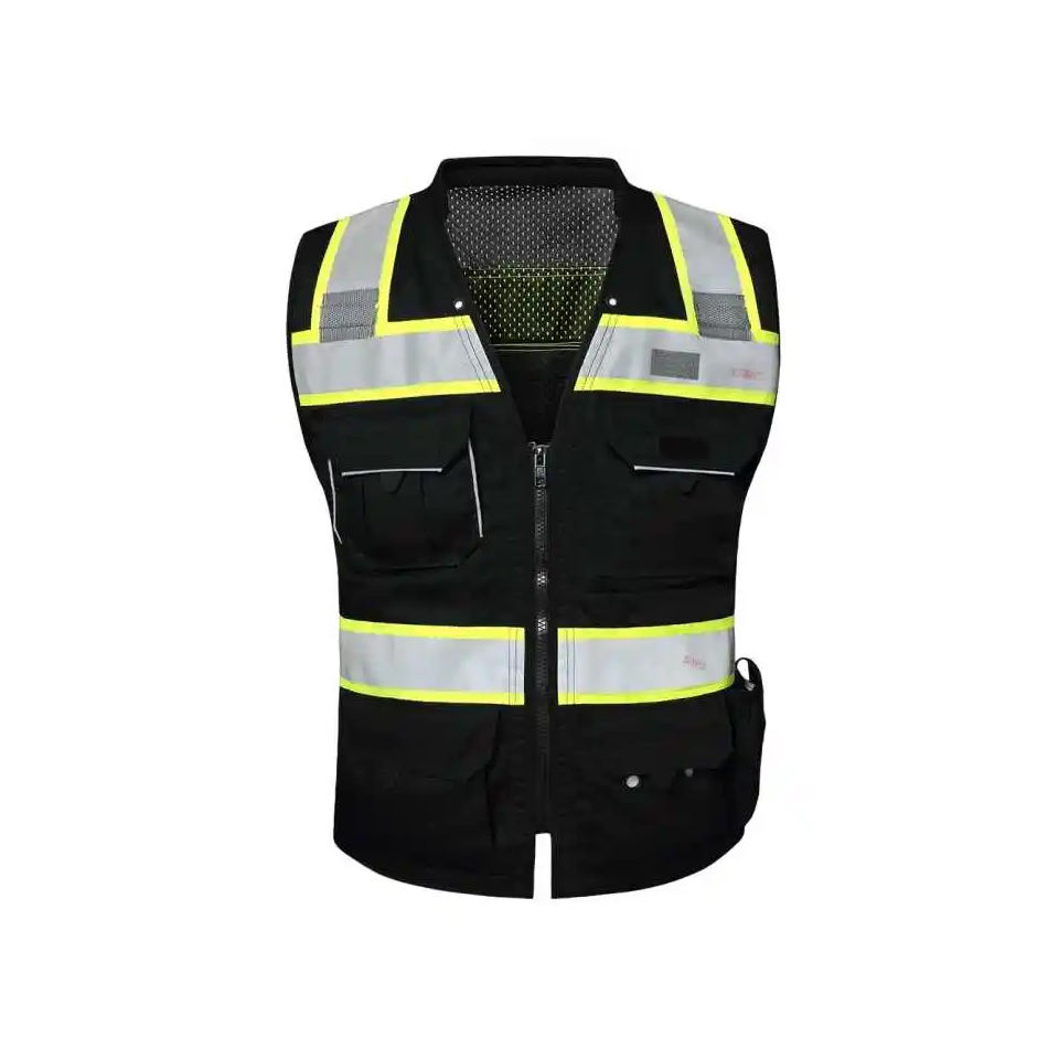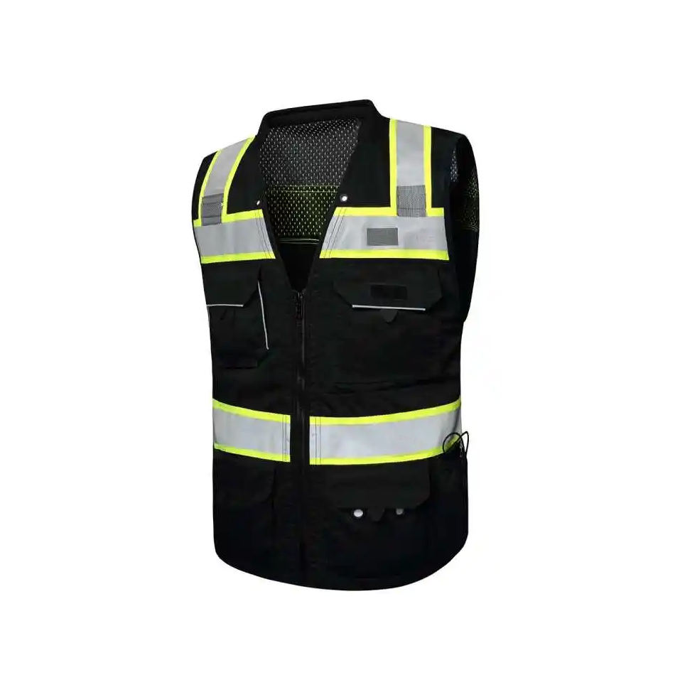 เสื้อกั๊กก่อสร้างสะท้อนแสงสำหรับผู้ชายเสื้อใส่ทำงานสำหรับวิศวกรเสื้อแจ็กเกตแบบออกแบบโลโก้ได้ตามที่ต้องการ