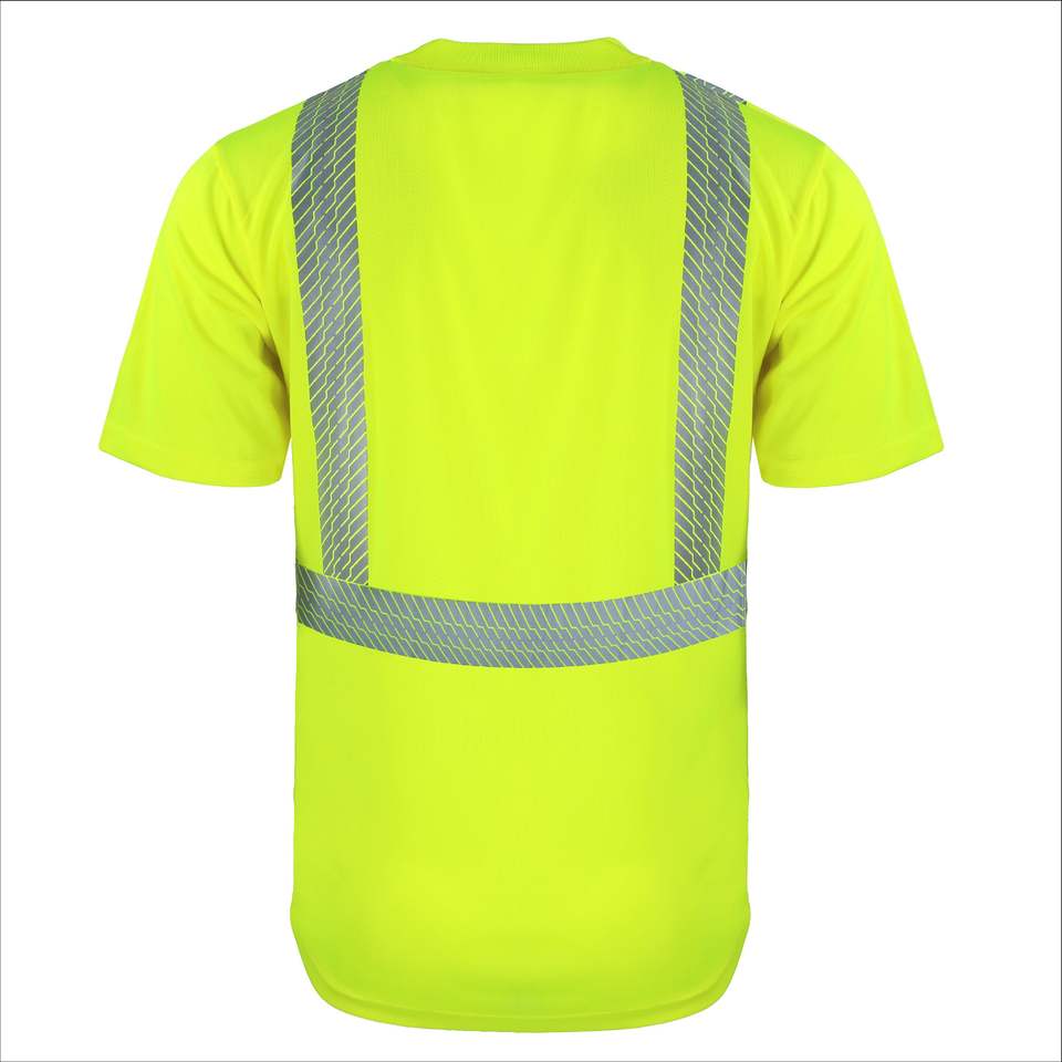 เสื้อยืดสะท้อนแสงสีเหลืองนีออนสำหรับงาน ความปลอดภัยสูง มองเห็นได้ชัดเจน พร้อมโลโก้สั่งทำพิเศษ สำหรับผู้ชาย