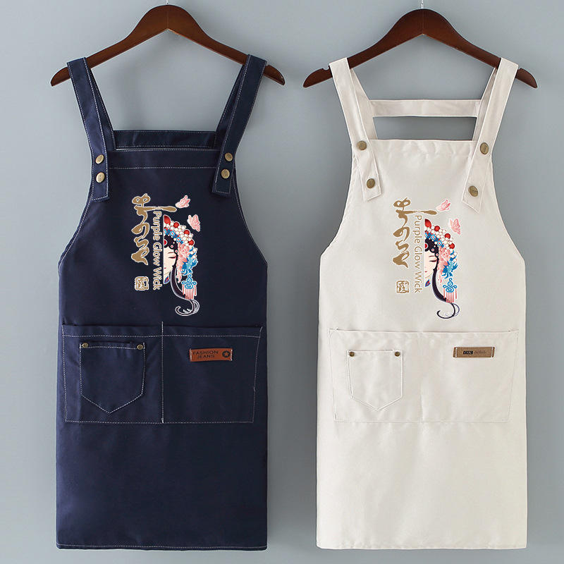 ผ้ากันเปื้อนโลโก้สั่งทำระดับพรีเมียม สำหรับใช้ในครัวเรือน กันน้ำ กันน้ำมัน ชุดทำงานผู้หญิง ผ้าฝ้ายแท้ สไตล์ใหม่ปี 2026 แบบเน็ตไอดอล