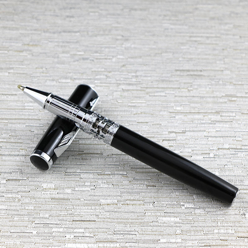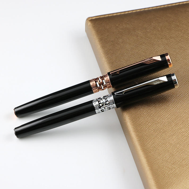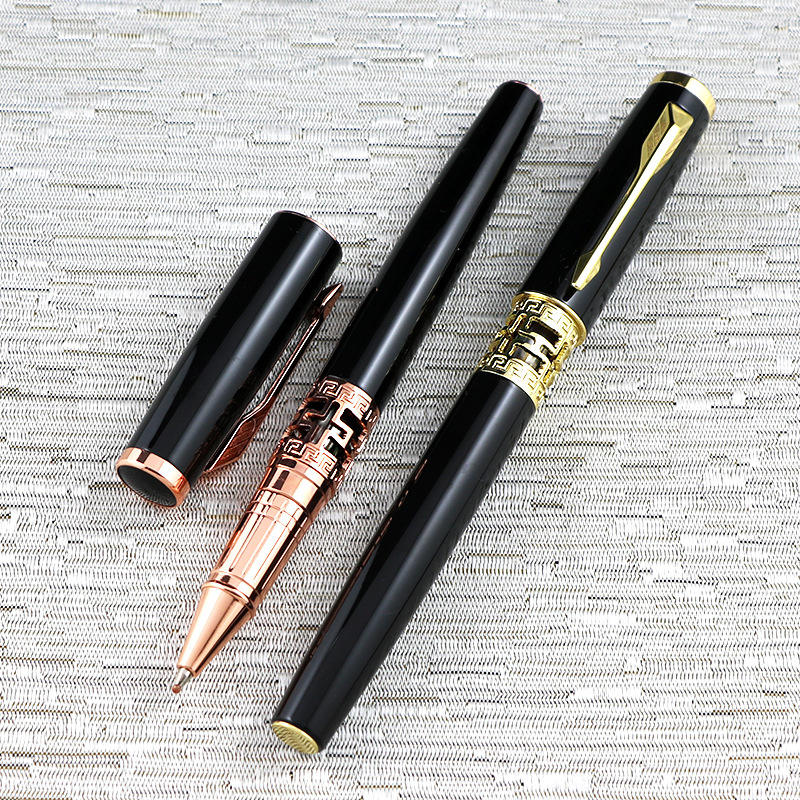 ปากกาโลโก้แบบกำหนดเอง ปากกาโลหะแบบโรลเลอร์สีดำโรสโกลด์สำหรับธุรกิจใหม่