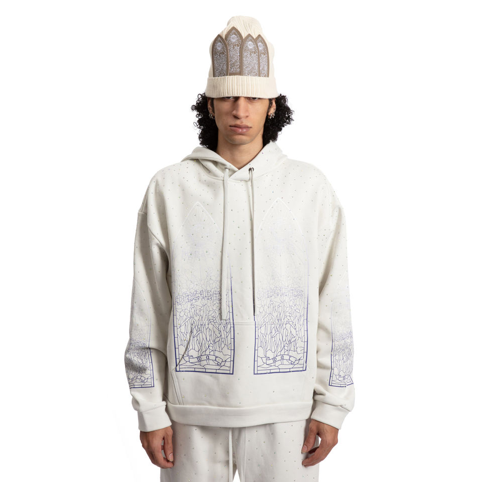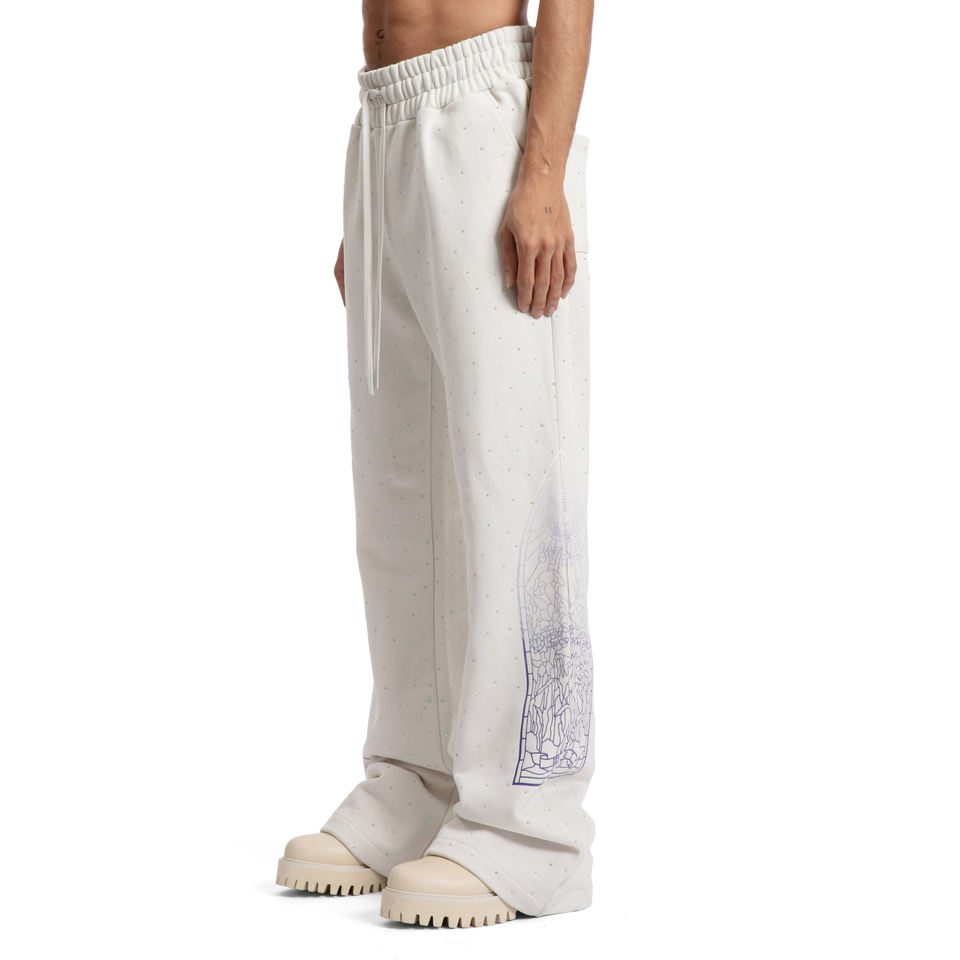 ชุดเซ็ตแทรคสูทโอเวอร์ไซส์พิมพ์ลายโลโก้ตามสั่ง ผ้าฝ้ายฟลีซ ประดับคริสตัล สไตล์สตรีทแวร์ กางเกงจ็อกเกอร์ขาบาน สองชิ้น ขายส่ง รับผลิตแบบ OEM