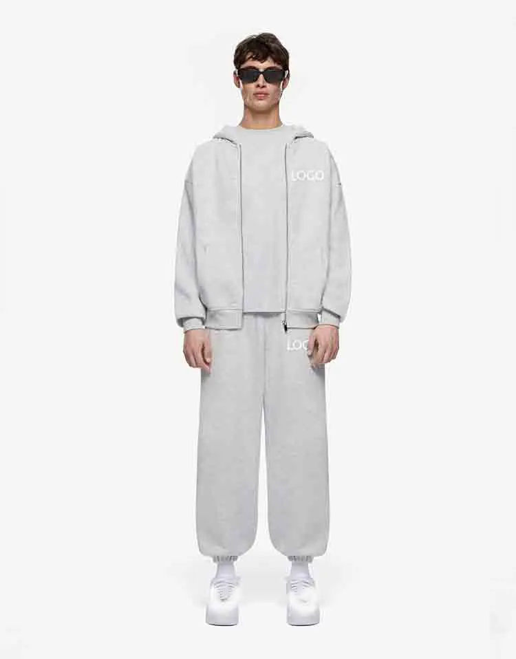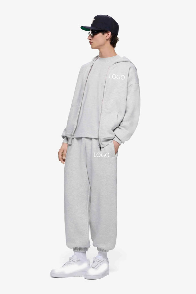 ชุดเซ็ตแทรคสูทผ้าฝ้ายพิมพ์ลายโลโก้แบบกำหนดเอง สไตล์สตรีทแวร์ คุณภาพสูงสำหรับผู้ชาย 2 ชิ้น ทรงหลวมโอเวอร์ไซส์ ผ้าหนา