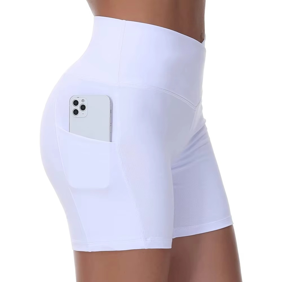 กางเกงขาสั้นเอวสูงสำหรับผู้หญิง พิมพ์โลโก้ได้ตามต้องการ ระบายอากาศได้ดี ยืดหยุ่น กระชับรูปร่าง ไร้ตะเข็บ สีขาว เหมาะสำหรับออกกำลังกายและสวมใส่สบายๆ