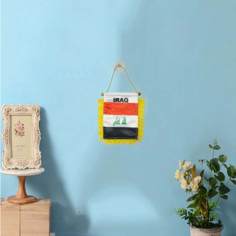 ธงสามเหลี่ยมอิรักพิมพ์ลายดิจิทัลบนผ้าโพลีเอสเตอร์และพลาสติกสำหรับติดกระจกมองหลังรถยนต์และตกแต่งบ้าน