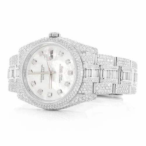 นาฬิกาข้อมือสุดหรูสไตล์ฮิปฮอปหน้าปัดสีขาว VVVS แบบบาแกตแบบอัตโนมัติสำหรับผู้ชายโลโก้ออกแบบได้ตามต้องการ