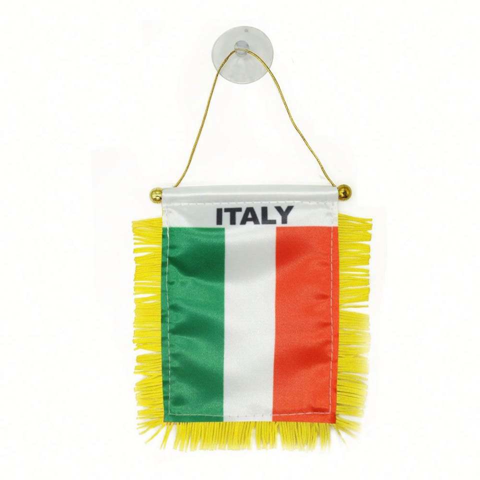 ธงสามเหลี่ยมอิตาลีพิมพ์ลายดิจิทัลบนผ้าโพลีเอสเตอร์และพลาสติก สำหรับติดกระจกมองหลังรถยนต์และตกแต่งบ้าน พร้อมโลโก้สั่งทำ