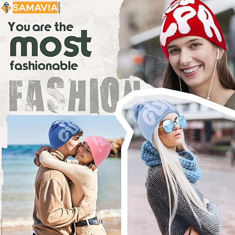 Custom Logo Jacquard Letter Beanie Hat Knitted Winter Cap for Men Women OEM Fashion Streetwear Style Skull Cap