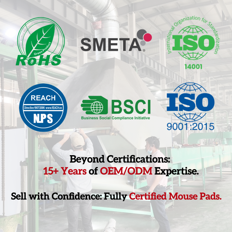 RoHS/Reach/CA65/PAHs/Sedex 4P/ISO9001/ISO 14001/BSCI/etc.