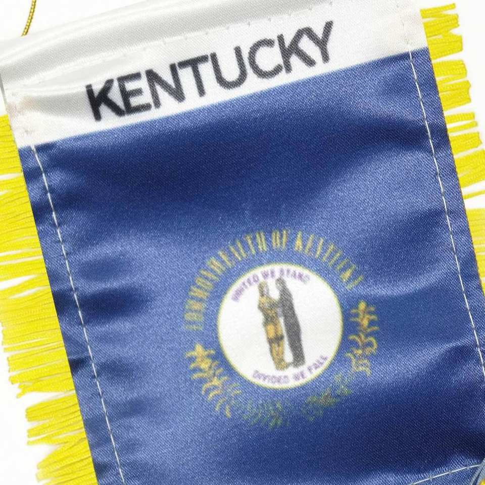 ธงสามเหลี่ยม KENTUCKY พิมพ์ลายดิจิทัล พร้อมโลโก้สั่งทำ สำหรับติดกระจกมองหลังรถยนต์และตกแต่งบ้าน