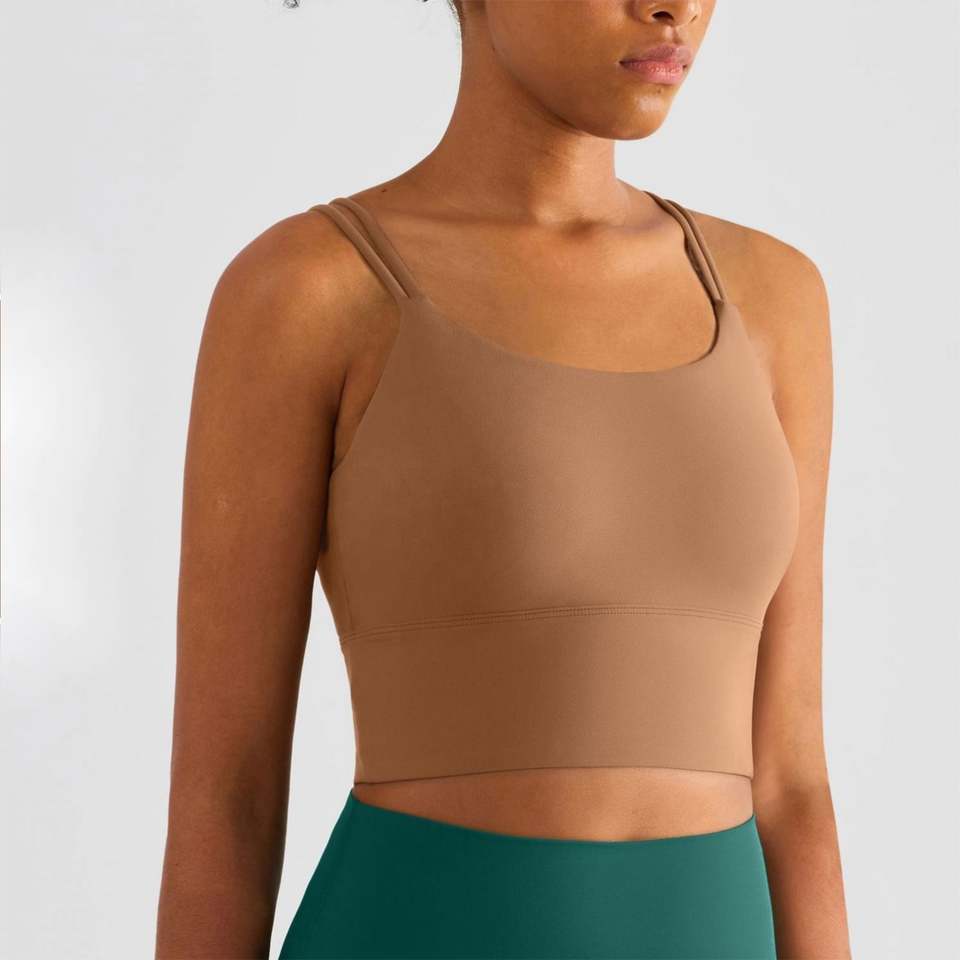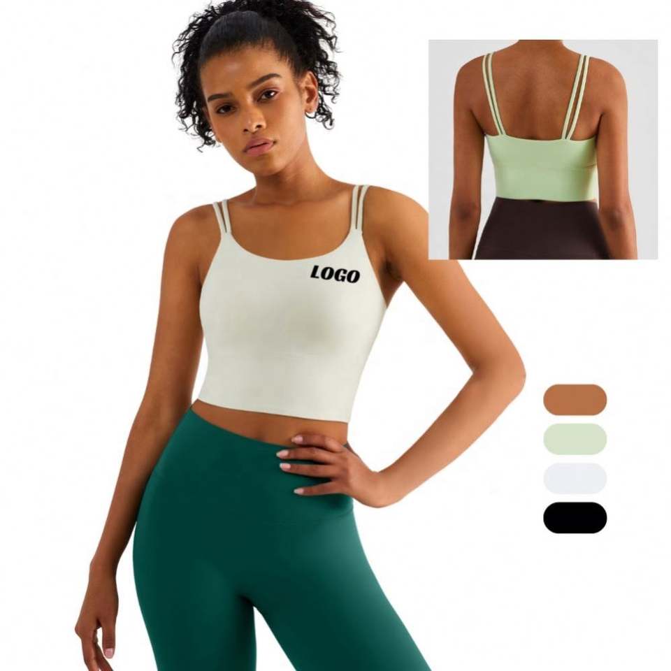 เสื้อกล้ามรัดรูปสำหรับผู้หญิงพร้อมบราในตัวแบบมีฟองน้ำเสริม สายเดี่ยวเส้นเล็ก สกรีนโลโก้ได้ตามต้องการ