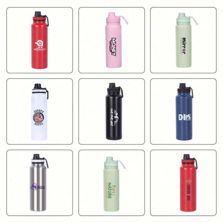 กระติกน้ำเก็บความร้อนแบบสุญญากาศสองชั้น สแตนเลส พิมพ์โลโก้ได้ ความจุขนาดใหญ่ สำหรับเล่นกีฬาและเดินทาง