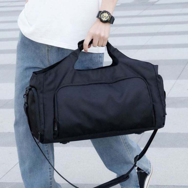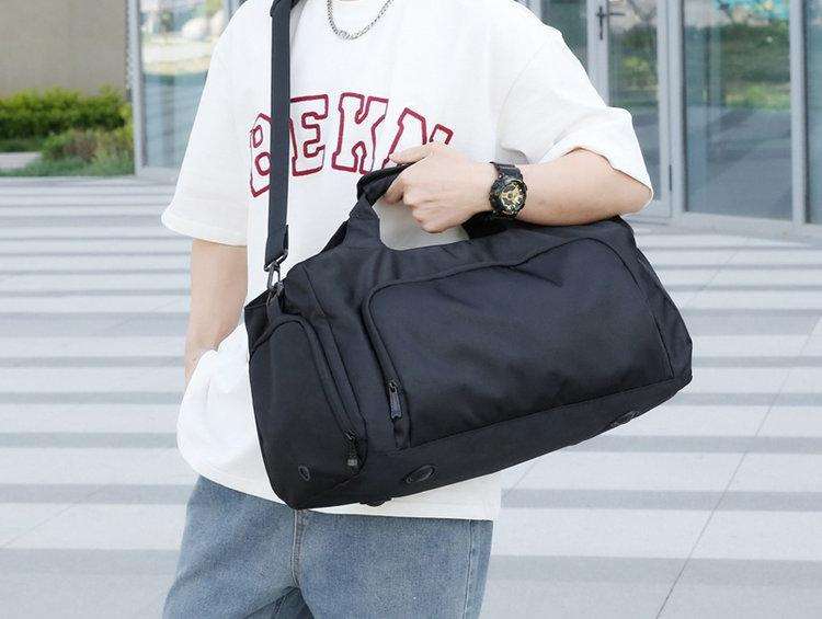 กระเป๋าเดินทางกันน้ำขนาดใหญ่พิมพ์โลโก้ได้ กระเป๋าสะพายเดินทางอเนกประสงค์เรียบง่ายสำหรับออกกำลังกาย ฟิตเนส โยคะ สำหรับผู้ชาย