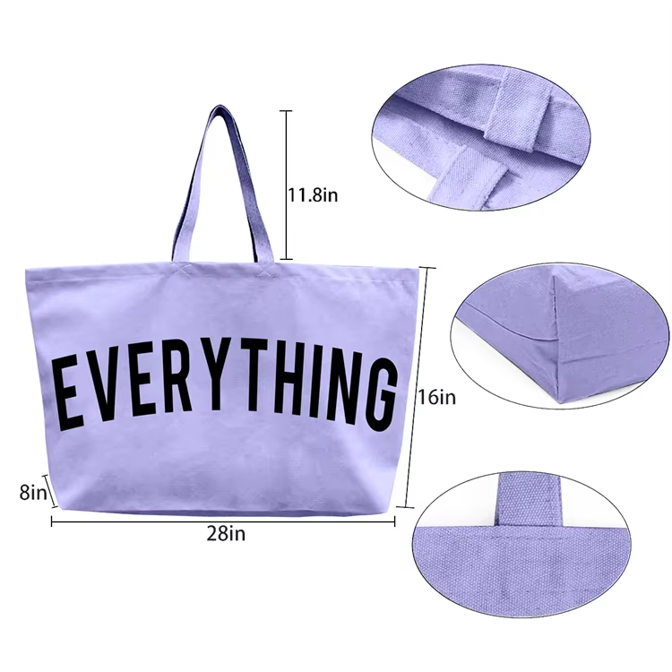 กระเป๋าผ้าแคนวาสขนาดใหญ่ พิมพ์โลโก้ตามสั่ง กระเป๋าช้อปปิ้ง กระเป๋าโท้ทผ้าแคนวาสสำหรับผู้หญิง พิมพ์ลายส่วนตัว