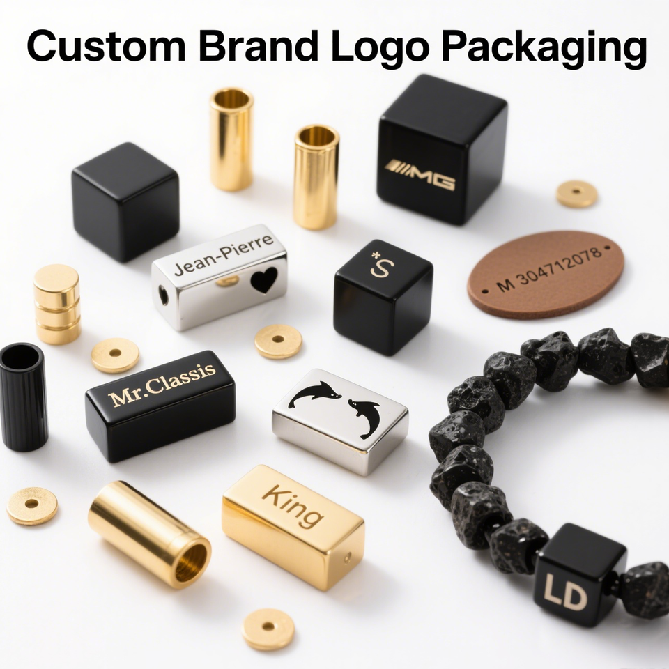 โลโก้ที่กำหนดเองสลักด้วยเลเซอร์บนลูกปัดลูกบาศก์สแตนเลส, ลูกปัดสี่เหลี่ยม, ลูกปัดสเปเซอร์แบบทำมือสำหรับสร้อยข้อมือเครื่องประดับบริการเครื่องจักร
